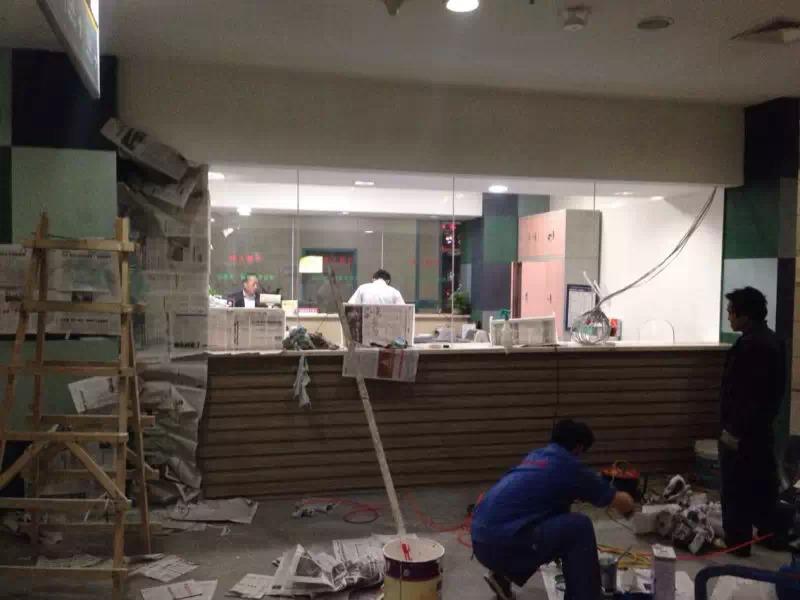 在雨季来临前,加班加点,日夜抢工,如期完成阳台地面防水整修工作,并在地面嵌入医院LOGO,从细节处彰显医院文化。
