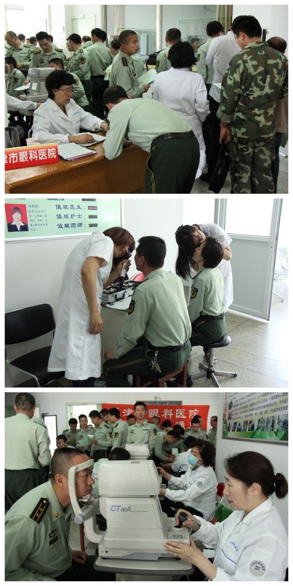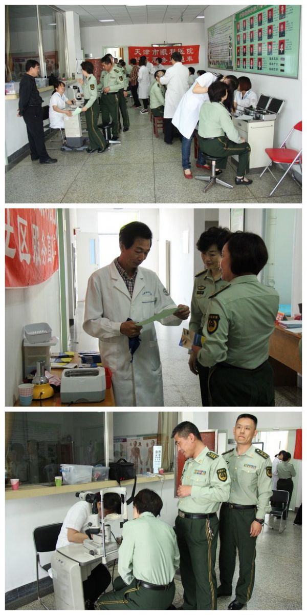 为了进一步加强军地联系,共叙军民鱼水情,5月7日上午市眼科医院社区服务直通车医护专家组成拥军义诊队来到中国人民武装警察部队指挥学院,为部队180多名教师、学员和家属进行眼科义诊,并发送药品18支,修理、清洗眼镜60余副,发放眼科科普材料300多份,受到了部队领导的高度赞扬和学员的热烈欢迎。