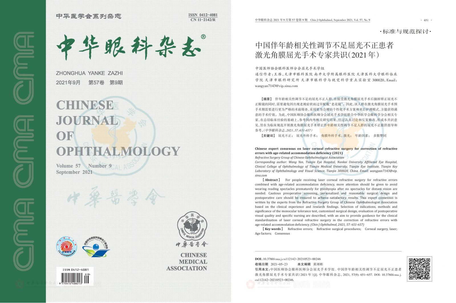2021年 中国伴年龄相关性调节不足屈光不正患者激光角膜屈光手术专家共识(2021年)