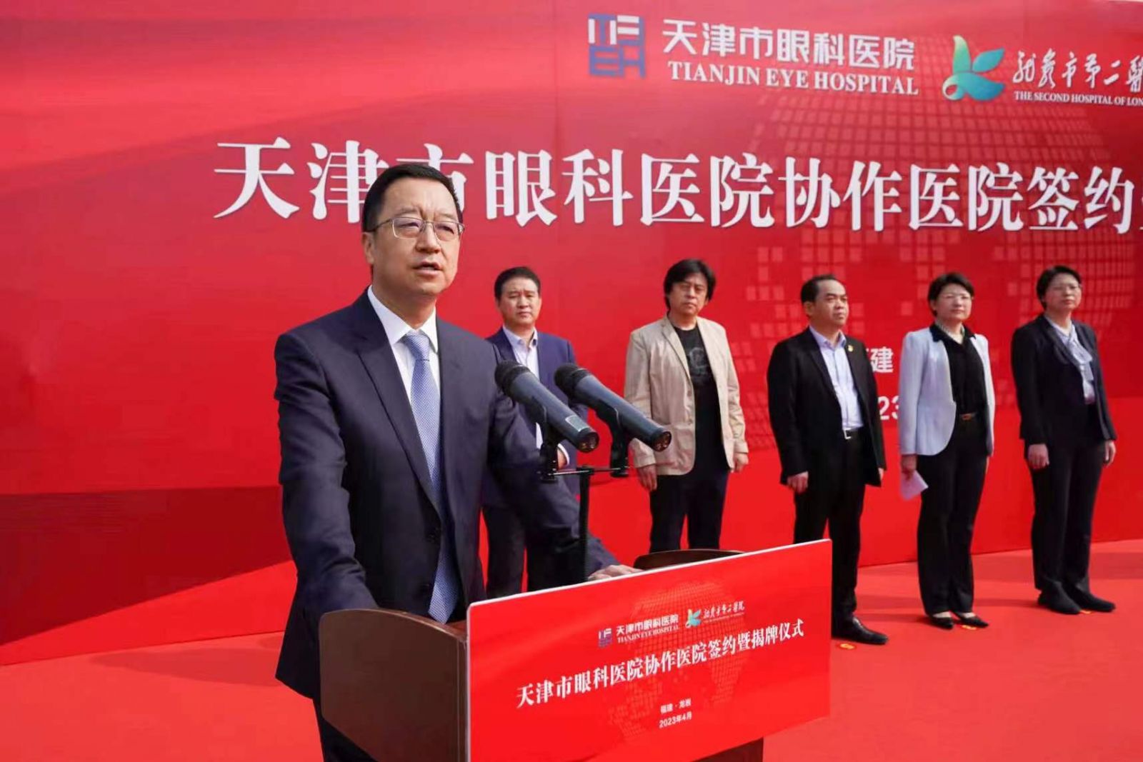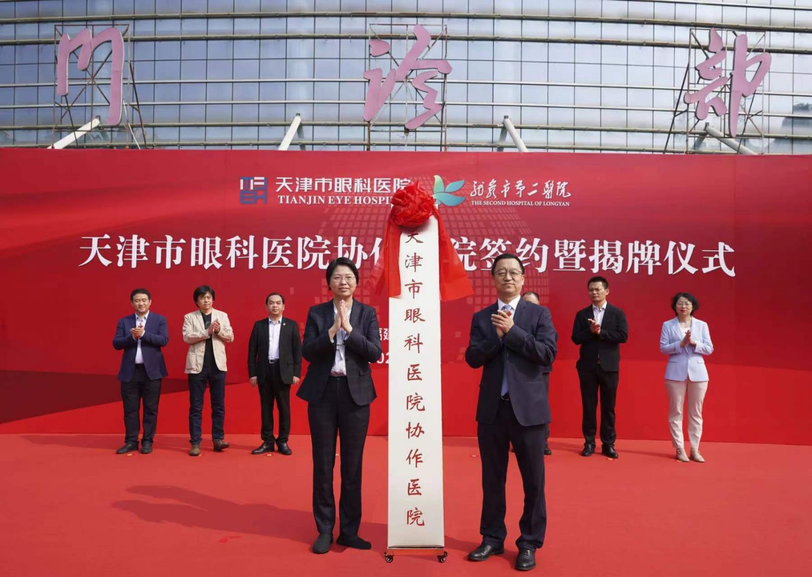 张伟副院长与修洪副市长共同为“天津市眼科医院协作医院”揭牌。