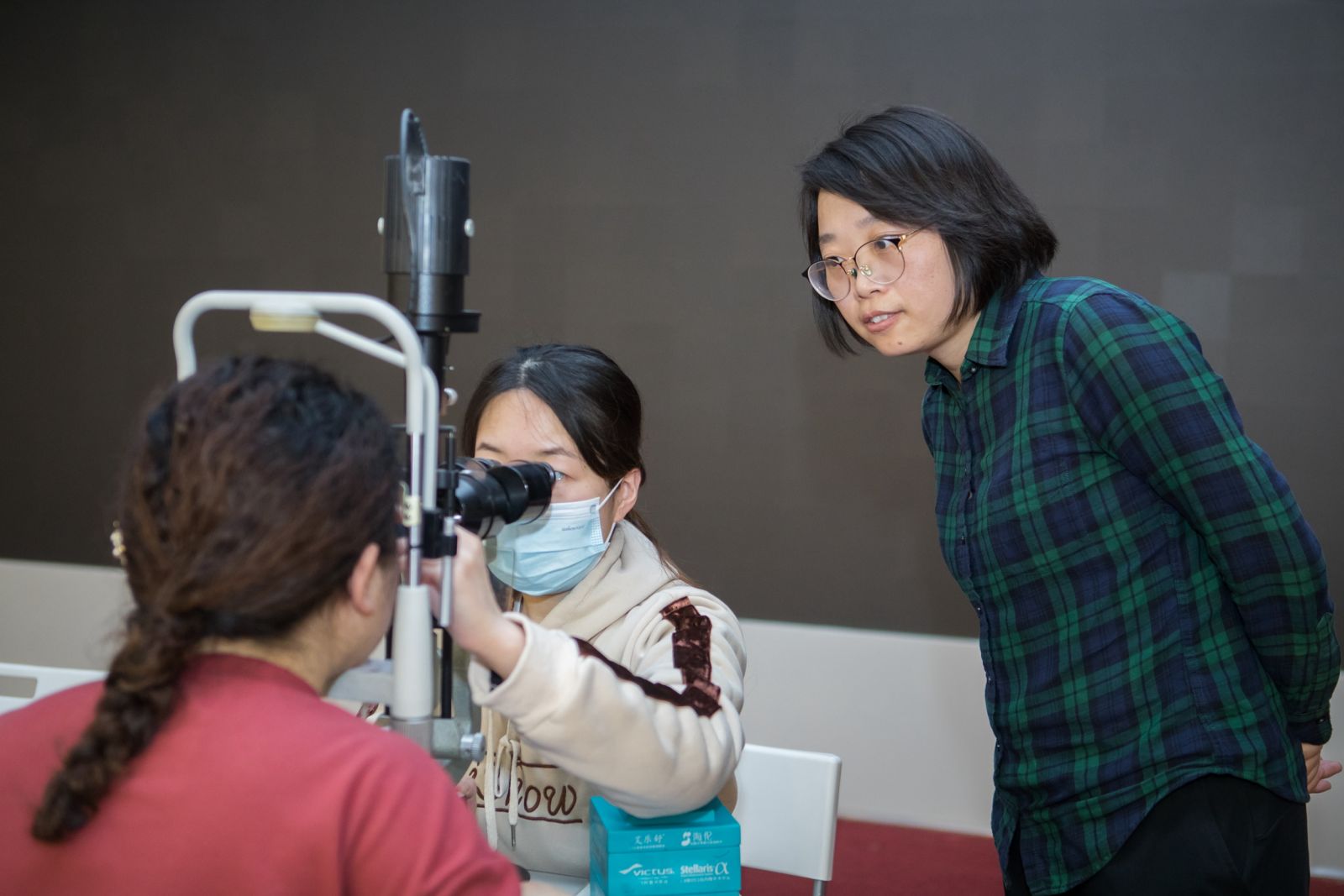 下午时段特别设立实操环节。间接检眼镜及裂隙灯前置镜训练采用真人实操学习模式,学员互相轮换进行检查训练。同时,老师使用多媒体设备进行实时操作演示,促进学员切实掌握检查和眼底绘图技巧。现场学习氛围浓厚,学员们踊跃实践。其中,双目间接检眼镜模拟器训练受到学员们的喜爱。