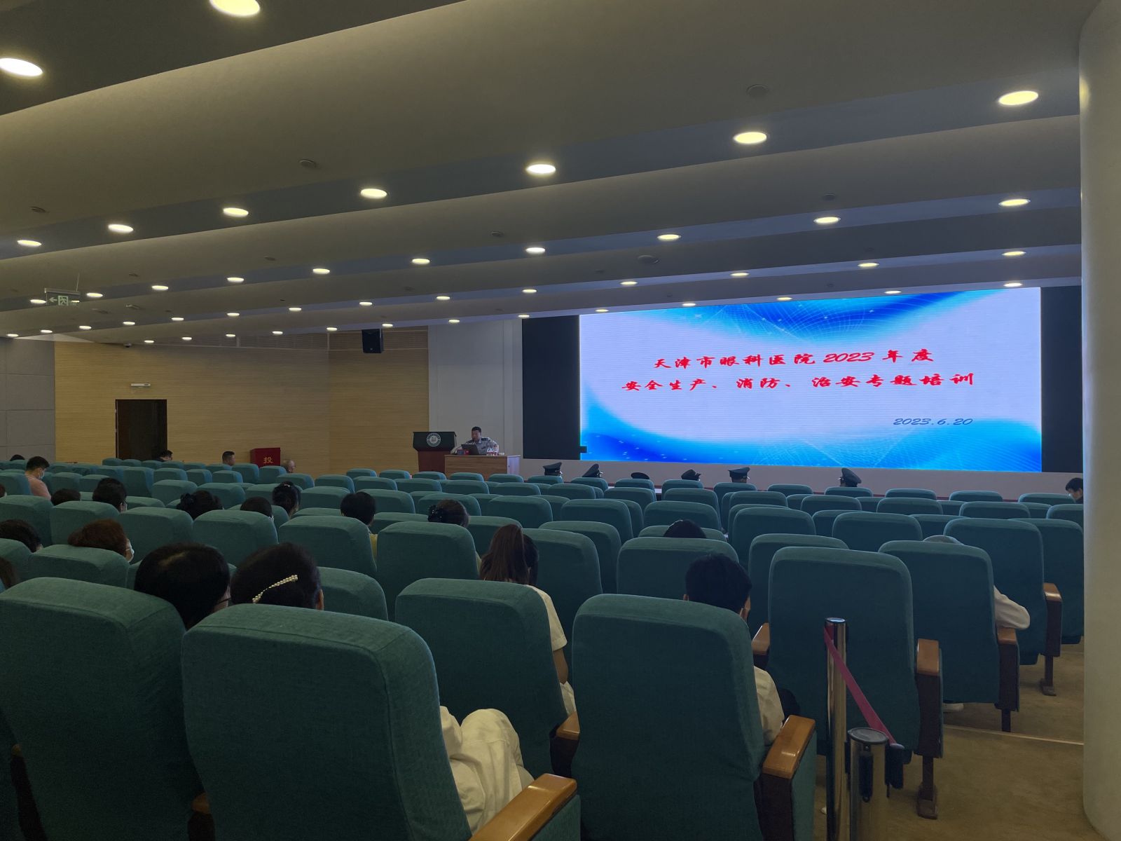 为深入贯彻党的二十大精神和习近平总书记关于安全生产重要论述,贯彻落实国家“安全生产月”活动精神,坚持人民至上、生命至上,坚持统筹发展和安全,持续树牢安全红线意识,天津市眼科医院院领导高度重视,保卫科、总务科联合组织开展安全生产、消防、治安专题培训会,特邀安全生产专家、消防支队专家、市公安局和平分局内保支队专家为职工进行知识讲座培训。