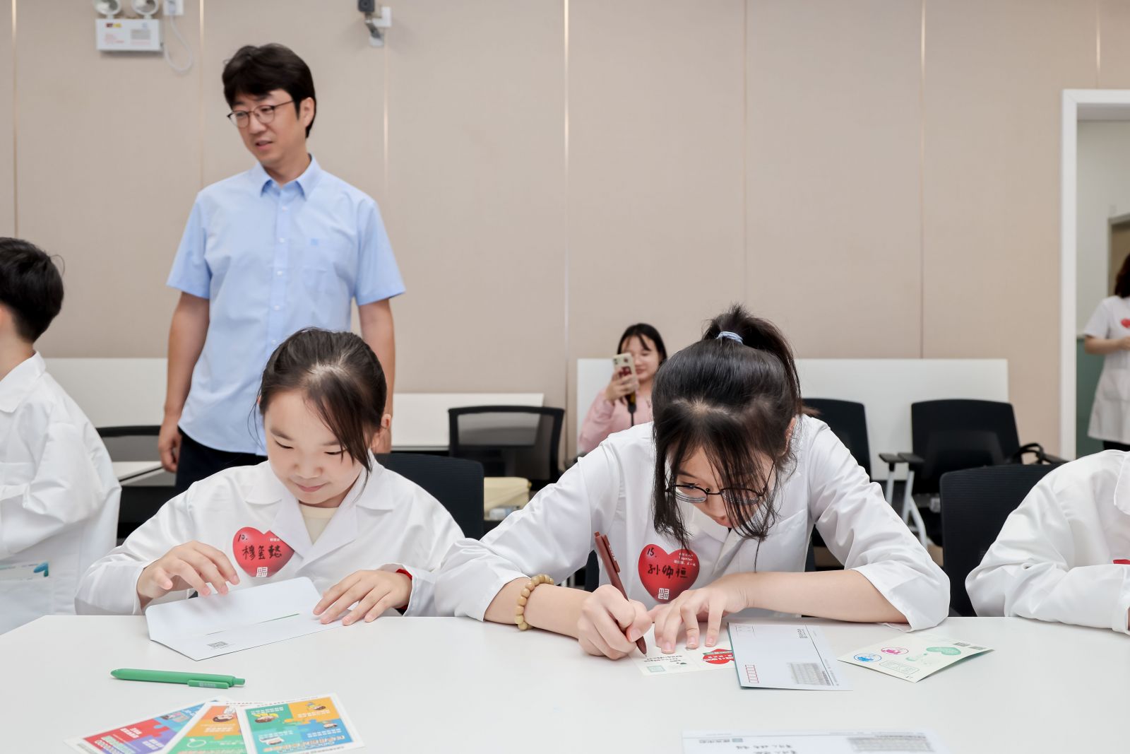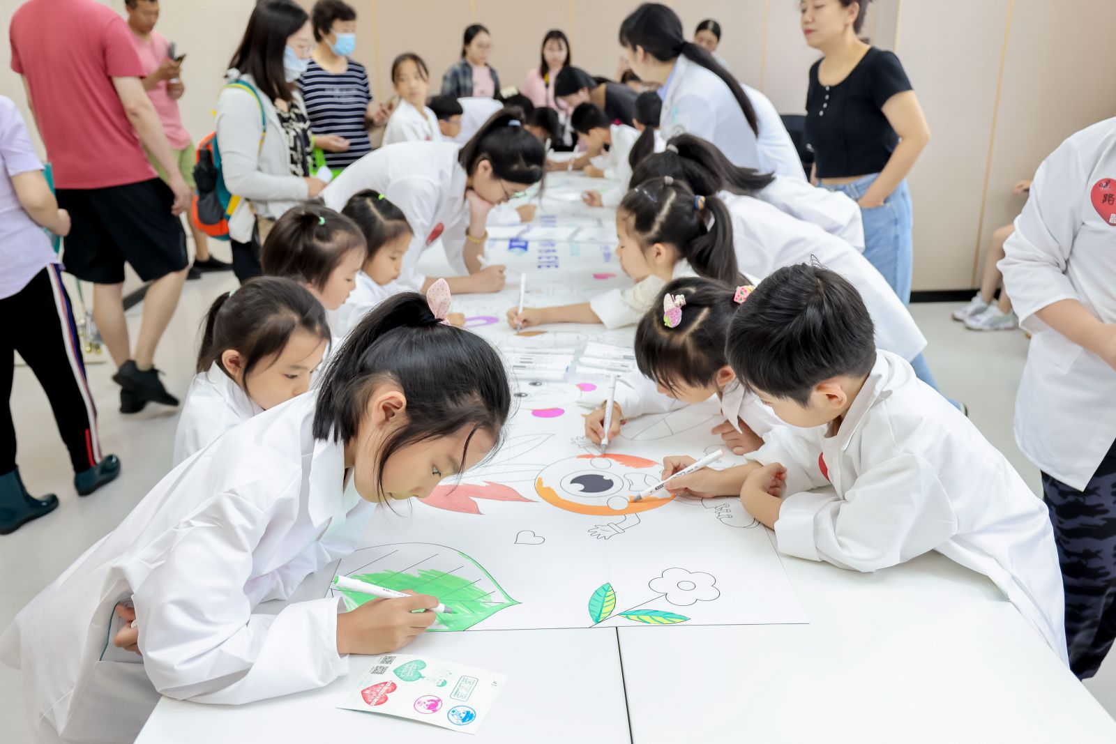 23名小朋友身穿白大衣,化身小小视光师,在现场工作人员的带领下开启了一场神奇的眼健康之旅。通过视光科普小讲堂、爱眼互动小游戏、眼健康检查、镜片个性化印刻、绘制画卷等精心设计的有趣活动,鼓励孩子们积极学习、勇于实践,成为一名“视光小行家”,将爱眼护眼的眼健康知识和理念带给更多的家庭。