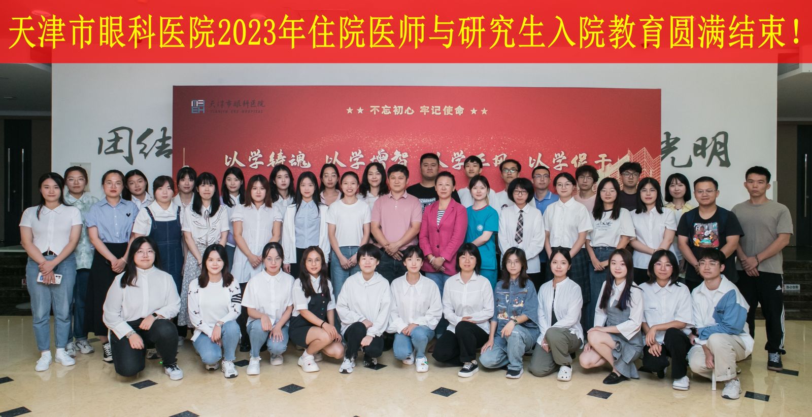 希望通过入院教育,同学们能够在未来的三年里,共同营造团结友爱的集体氛围,发扬吃苦耐劳的优良作风和刻苦钻研的精神,逐步提升六大岗位核心胜任力,早日成为一名合格的医师,在天津市眼科医院大家庭里成就更好的自己。