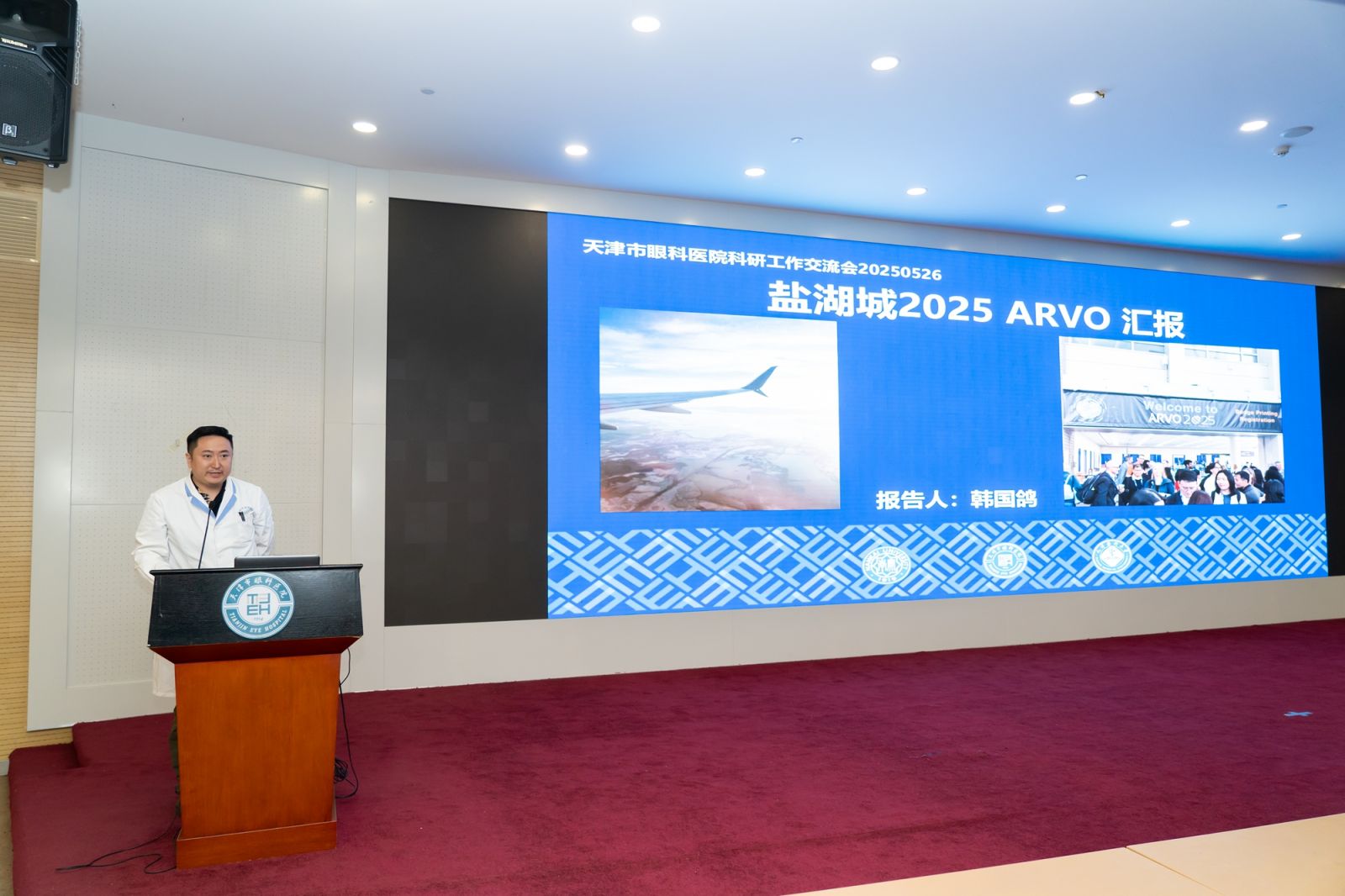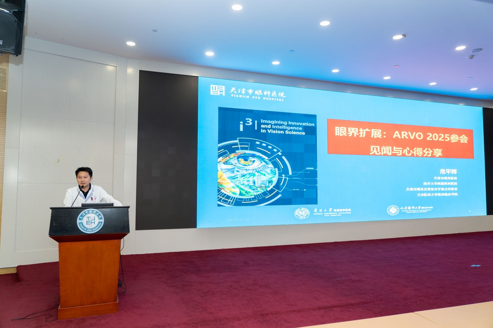 会议伊始,由天津市眼科医院副院长韩泉洪做“2025年ARVO大会参会总结汇报”,详细介绍了参会盛况并针对视网膜病:基因与RNA治疗、新药研发进展、视网膜疾病管理、青光眼治疗、近视防控:临床研究进展与基础机制研究、细胞、成像与免疫与AI驱动研究等热点领域进行了逐一介绍与总结,最后对ARVO 2026做出展望。