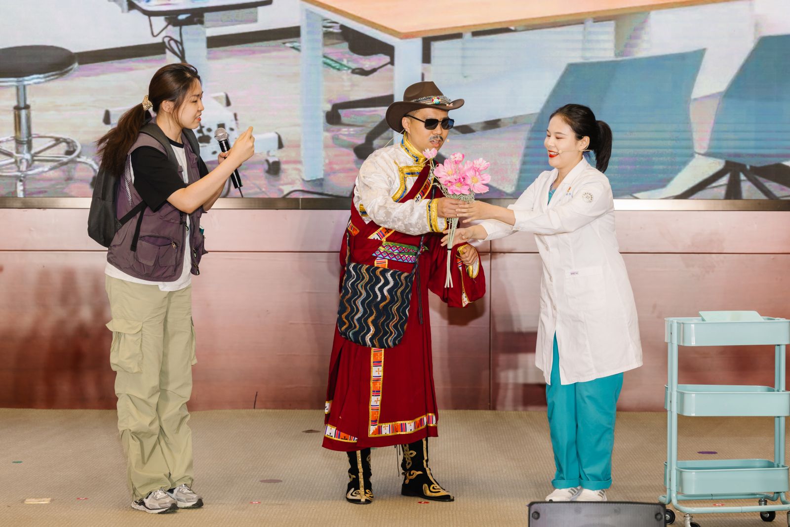 会上,展示了“以文润心 以文兴医”主题文化作品征集活动中获奖的优秀作品。天津市眼科医院宣传科作品《一片冰心在雪域 人民健康心常系》获评表演类优秀作品。此情景剧以天津市眼科医院医务人员医疗援藏的故事为背景,将党的二十大精神与习近平总书记视察天津重要讲话精神、习近平文化思想融入其中,同时紧抓京津冀协同发展重大战略这一历史契机,展现了医院多年来形成的志愿服务品牌,包括社区服务直通车、青少年近视防控、柔性帮扶与医疗援非、天津市眼科专科联盟、眼健康科普、天津市眼健康志愿服务队,表达了坚守医者使命的初心。