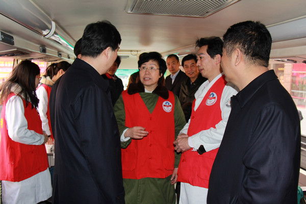 2014年3月18日友谊精品广场和平区志愿者义诊活动,天津市副市长孙文魁亲临现场并来到我院的医疗服务车了解情况,我们向市长介绍了直通车的功能、用途及目前我们遇到黄标车限行而无法深入社区服务的难题。