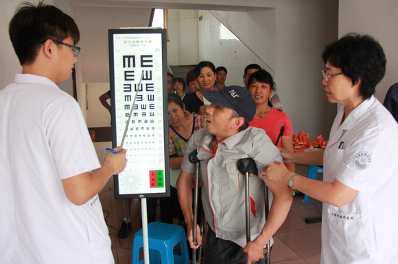 2014.6.26天津市眼科医院社区服务直通车来到蓟县侯家营镇政府,为当地职工和村民义诊121人,验光85人,发药47支。