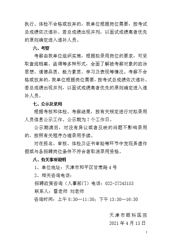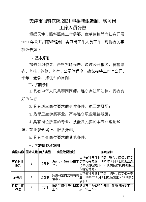 首页>>天津市眼科医院2021年招聘派遣制、实习岗