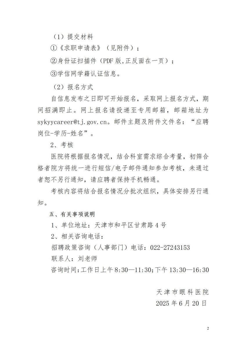 首页>>天津市眼科医院2025年度招聘实习岗工作人员公告