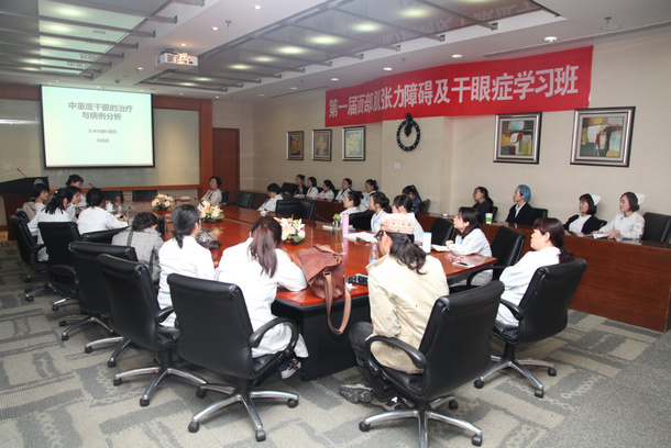 本次由天津市眼科医院医疗美容科主办的“第一届面部肌张力障碍及干眼症学习班”已经圆满地落下帷幕。此次学习班由我院医疗美容科主任陈文莉主持,会议邀请到上海复旦大学附属眼耳鼻喉医院眼表疾病专业的龚岚教授讲解肉毒素在眼科的应用,我院角膜学组的李轩和陈陆霞主任讲解干眼症的病因、分类和治疗,以及本院医疗美容科的陈遐主任讲解眼睑痉挛和半侧面肌痉挛的病因、鉴别诊断和现场演示注射技巧。在学习过程中,学员们仔细听取了眼科专家对于眼表疾病中的干眼症问题进行深部探讨,学习干眼症的治疗新方法(肉毒素及OPT疗法);了解到以眼睑痉挛和面肌痉挛为代表的面部肌张力障碍性疾病的治疗方法。