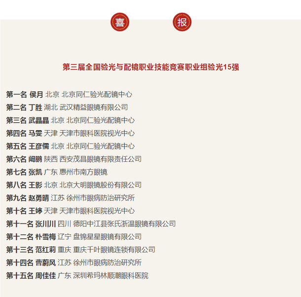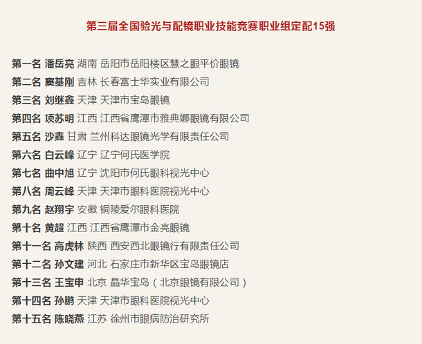 万里挑一︱第三届全国验光与配镜职业技能竞赛总决赛成绩新鲜出炉