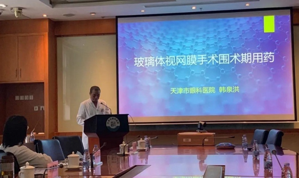 天津市眼科医院玻璃体视网膜科主任医师韩泉洪进行了题目为《玻璃体视网膜手术围术期用药》的精彩报告。从术前、术中、术后药物的合理应用进行了介绍,说明了合理使用抗VEGF药物对临床的意义,使药师们对玻璃体视网膜病变围手术期用药有了更加深入的了解。