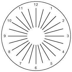 测试说明: 当配戴矫正眼镜的眼或不戴眼镜看散光表各向线条粗细均匀时,证实被检眼散光已充分矫正或表明无散光现象。当被检眼发现散光表中某一线条黑而清晰,说明有散光的可能。 |