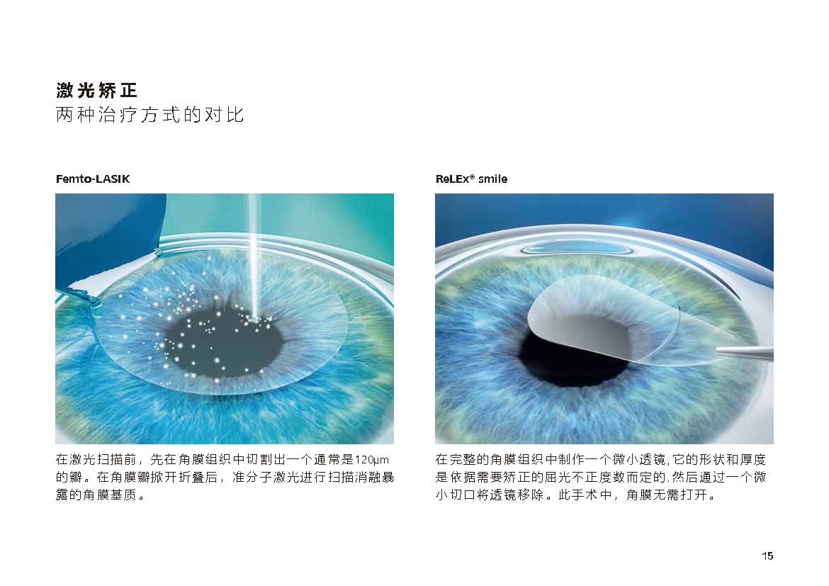 目前是国际上新的激光矫正技术,特指屈光手术领域中的SMILE(即飞秒微小切口基质透镜切除术small incision lenticule extraction,SMILE)和FLEX,其中SMILE是世界上飞秒激光治疗近视的高水平。它的特点是“无瓣”、“微创”、“无忧”,手术的安全性、精确性较以往有很大提高。该手术的手术过程为应用飞秒激光在角膜基质层间进行不同深度的扫描,沿微小切口分离并取出透镜式角膜组织。SMILE整个过程实现了真正意义上的微创化,可避免以往因制作瓣膜所引起的一系列瓣膜相关并发症,角膜生物力学性质维持更好,周边完整的解剖结构避免了对角膜神经的损伤,手术后的愈合水平更牢固。