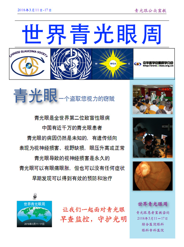 青光眼虽是终生性疾病,它却能通过积极的早期治疗,有效地控制疾病的发展,保持长久的有效视力。防盲治盲,人人有责,希望我们都能从自身做起,相信科学技术,提高青光眼患者的视觉质量和生活质量。
