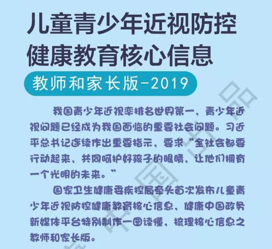 儿童青少年近视防控健康教育核心信息(教师和家长版—2019)