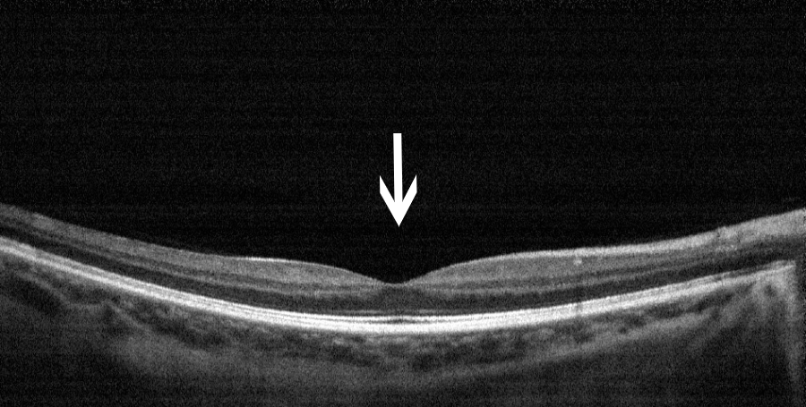 OCT:黄斑区视网膜的断面图,凹陷处为黄斑中心凹