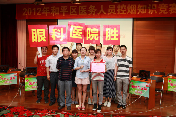5月31日,在第25个世界无烟日到来之际, 我院高亚东、梁静、肖博三位同志在由和平区卫生局、和平区健康教育指导中心主办的“2012年医务人员控烟知识竞赛总决赛”中获得冠军,为医院争得了荣誉,是我院在全面无烟医院建设中取得的新的成绩。(院办)
