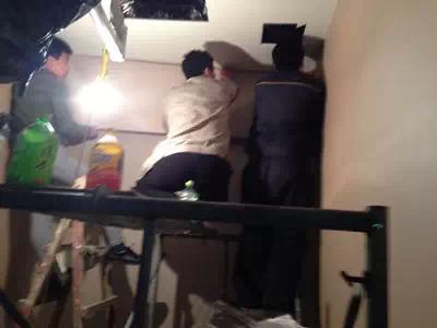 在雨季来临前,加班加点,日夜抢工,如期完成阳台地面防水整修工作,并在地面嵌入医院LOGO,从细节处彰显医院文化。