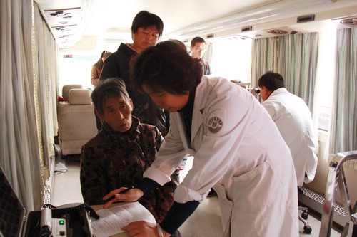 2014.11.7天津市眼科医院社区服务直通车来到山西省运城市盐湖区北相镇镇政府,为当地居民和视力不好的学生义诊175人。