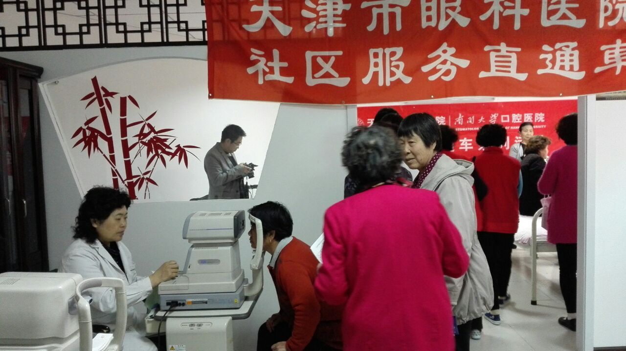 4月17日上午,天津市眼科医院社区服务直通车来到河东区芳水河畔社区,为居民义诊157人。