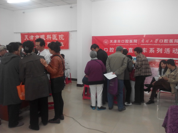 2015年4月15日,市眼科医院社区服务直通车与市口腔医院口腔健康直通车联合来到河西区梅江万科水晶城居委会,为150名居民进行了眼科和口腔的检查,并发放药品30余支,受到了当地居民的热烈欢迎。