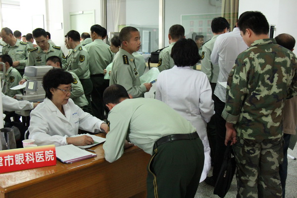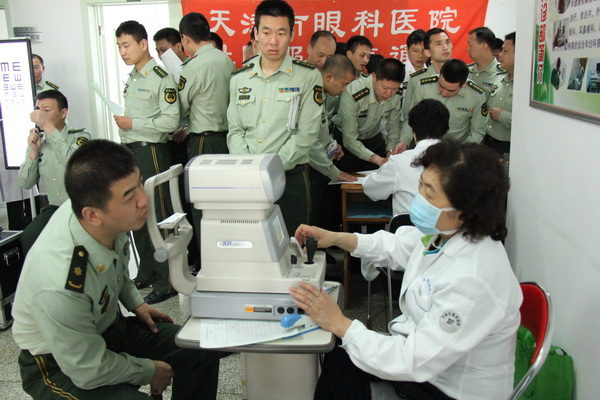 2015年05月7日为最可爱的人送健康-市眼科医院社区服务直通车为中国人民武装警察部队指挥学院义诊