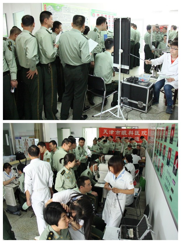 为了进一步加强军地联系,共叙军民鱼水情,5月7日上午市眼科医院社区服务直通车医护专家组成拥军义诊队来到中国人民武装警察部队指挥学院,为部队180多名教师、学员和家属进行眼科义诊,并发送药品18支,修理、清洗眼镜60余副,发放眼科科普材料300多份,受到了部队领导的高度赞扬和学员的热烈欢迎。