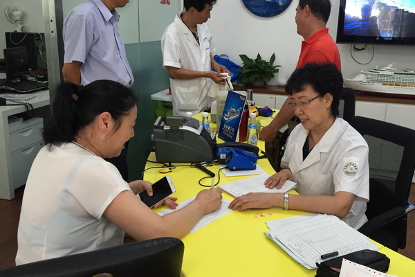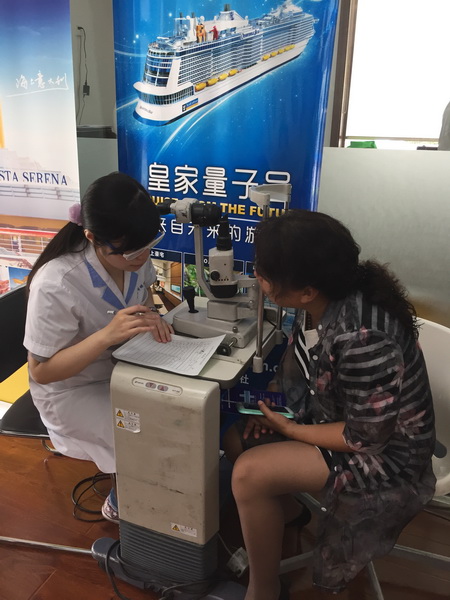 2015.7.10天津市眼科医院光明大巴来到市国际旅行社为88名职工进行了眼科义诊检查。