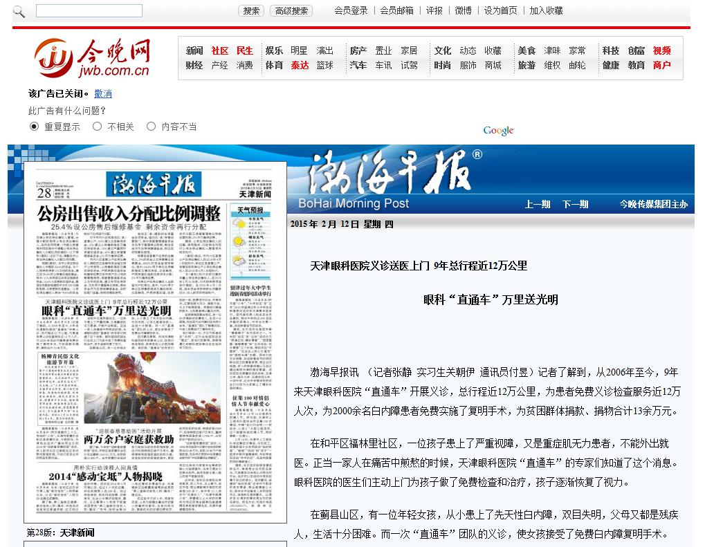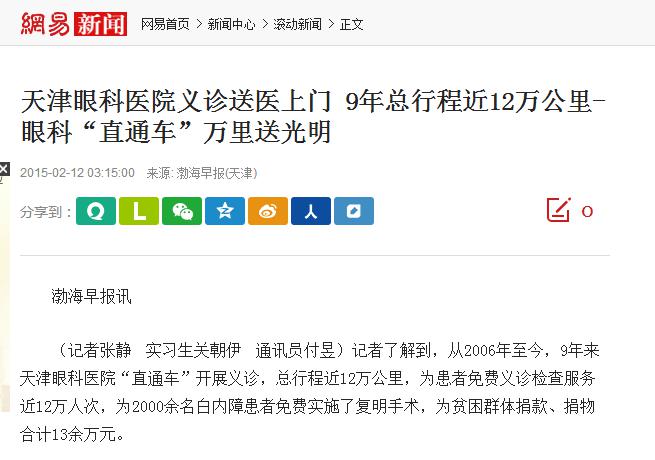 天津眼科医院义诊送医上门 9年总行程近12万公里- 眼科“直通车”万里送光明