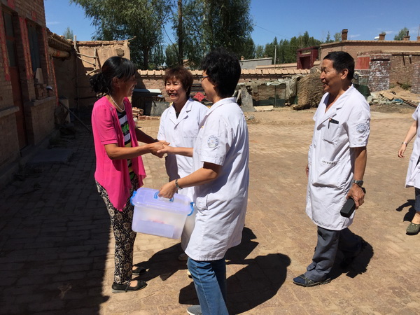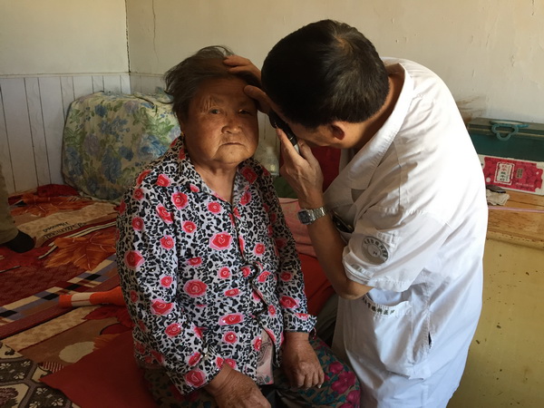 2015年8月2日在内蒙五原马家圪旦为行动不便的老奶奶入户义诊