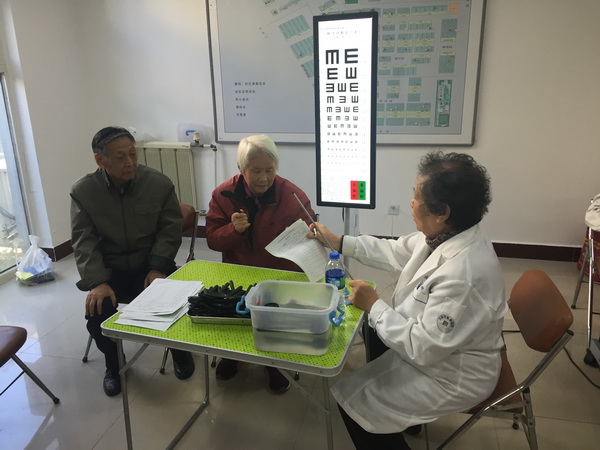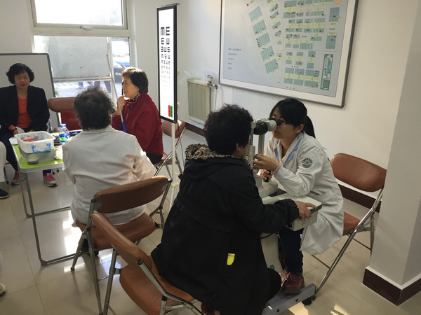 2015年10月28日,天津市眼科医院直通车赴天津市河西区梅江水晶城社区,为社区居民义诊77人。