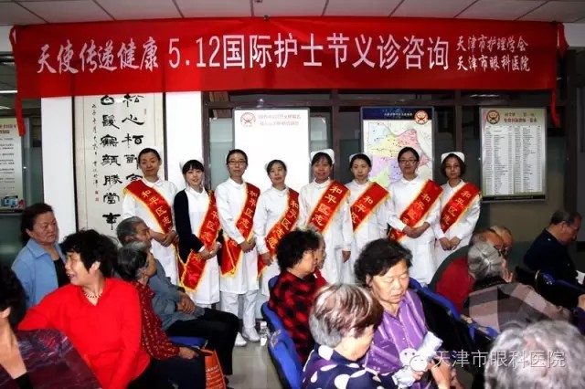 在5.12护士节之际,市眼科医院与天津市护理学会联合举办了“天使传递健康,5·12国际护士节义诊咨询”活动。在市眼科医院护理部主任曹淑卿同志带领下,护理人员与社区服务直通车一同,到和平区劝业场街,参加阳光志愿者活动,为社区老人检查眼睛,义诊咨询,奉献爱心,让大家渡过了一个充满意义的护士节!