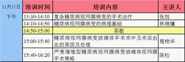“糖尿病视网膜病变的基础与临床研究进展”培训班课程安排