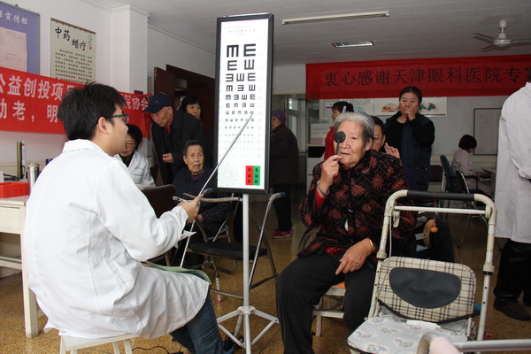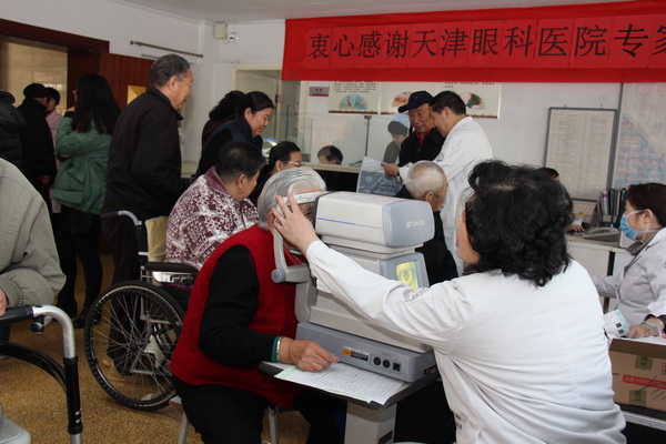 2016.12.8天津市眼科医院社区服务直通车来到武清松鹤园养老院,为该院95名老人进行眼科义诊,并发送老花镜28副、发药100支,受到了老人们的热烈欢迎和真心感谢。