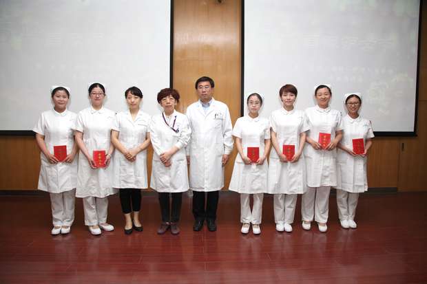 表彰仪式随即进行。桂勇利书记为在工作中表现突出的护士颁发荣誉证书;王雁副院长、李彬书记、吴小明副院长为在护理“比武练兵“中荣获一、二等奖的护士颁发荣誉证书。