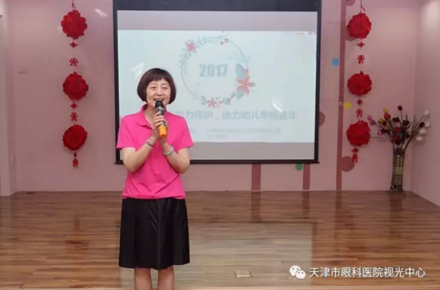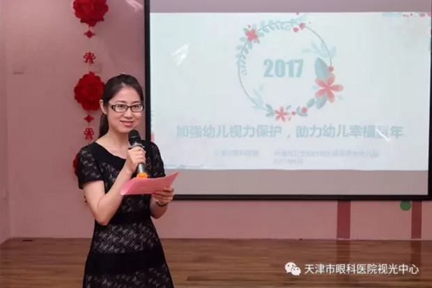 天津市眼科医院视光中心视觉康复训练室主任江洋琳为孩子和家长带来《幼儿园小朋友近视预防》爱眼知识讲座。