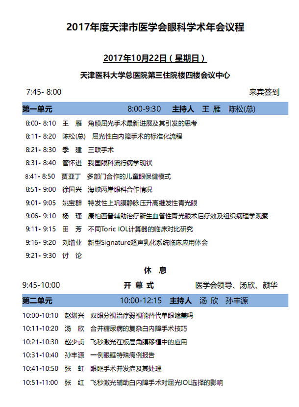 2017年度天津市医学会眼科学术年会议程