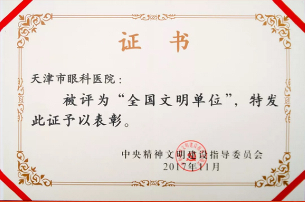 “全国文明单位”是中央精神文明建设指导委员会授予创建单位的最高荣誉,是精神文明建设领域的最高奖项 ,每三年评选表彰一次,是具有标杆性、示范性的称号。此次获奖是市眼科医院继2009年后第二次荣膺此项殊荣,充分体现了国家卫生计生委和天津市卫生计生委对我院精神文明建设工作的肯定和认可。