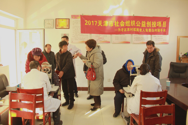 2017年12月21日,我院联合市老促会开展2017年社会组织公益创投项目暨为老区农村孤困老人免费白内障手术救助项目,赴宝坻三岔口镇卫生院为当地220多名老人进行了免费白内障筛查和眼科义诊咨询,并安排符合白内障手术条件的老人到医院进行术前检查和实施免费手术。 2017.12.21
