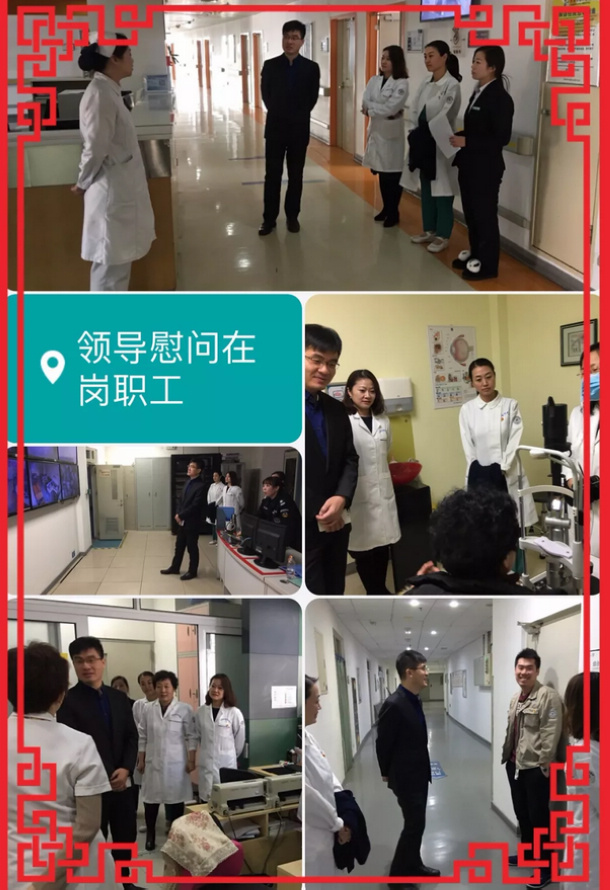 过年了!为确保医院的正常运转,还有很多职工默默地奉献,坚守在工作岗位上。医院领导代表全体职工向您们道一声辛苦了,祝您们春节快乐!阖家欢乐!也祝愿未能回家的住院患者们早日康复!