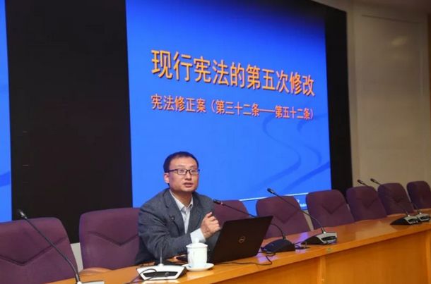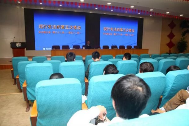 李晓兵教授讲述了宪法变迁的历史沿革,透过新旧法案对比将国家从站起来,富起来到强起来的伟大复兴画卷铺展开来,结合国际国内大局形势和百姓生活具体实际为大家进行了深入浅出的解读。