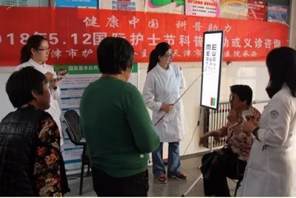 2.我院团委组织青年志愿者与护理部、防盲办联合开展眼健康义诊活动,将我院“光明大巴”开进天津科学技术馆,为科技馆工作人员进行义诊。护理人员也向科技馆工作人员发放眼科知识健康教育资料。