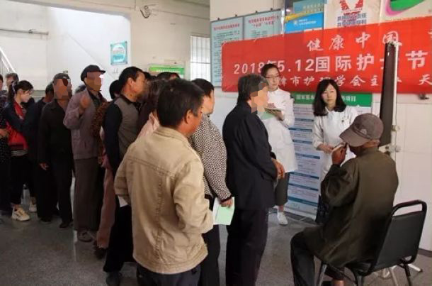 3.我院护理人员随直通车到静海沿庄镇医院义诊咨询。为当地村民进行白内障等眼病的筛查。