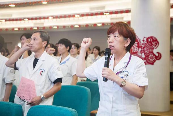 王雁副院长带领全体医师进行了庄重而圣洁的宣誓仪式。
