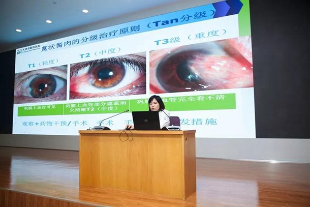 随后,角膜病科科主任陈陆霞以《翼状胬肉、结膜囊肿的手术方法与复发原因分析》为题,为大家进行了精彩授课。