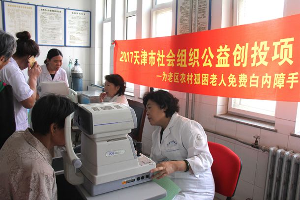 2018年6月13日,我院联合市老促会开展2017年社会组织公益创投项目暨为老区农村孤困老人免费白内障手术救助项目,赴蓟州区为当地108名老人进行免费白内障筛查和眼科义诊咨询。