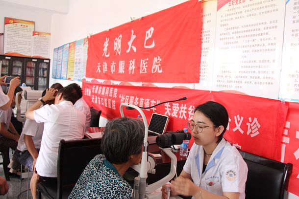 2018年6月25日,我院直通车赴宝坻林亭口镇顾家庄村开展眼科义诊活动,为该镇65名老人进行眼科义诊检查。