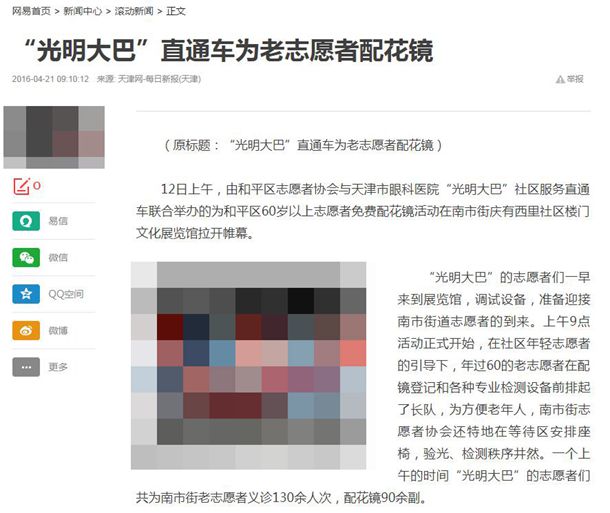 2016年4月21日-天津网-每日新报“光明大巴”直通车为老志愿者配花镜